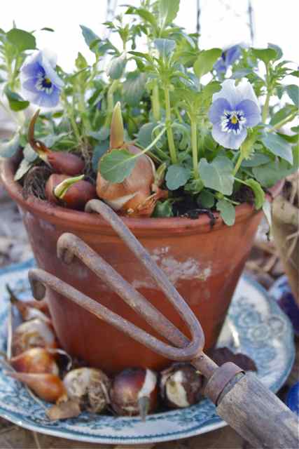 'Klon' som hänger på krukan är en av de fina gamla redskapen jag köpte på trädgårdsmässan.